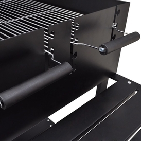 Šis klasikinis anglinis kepsninės stovas, pagamintas iš tvirto ir patvaraus plieno, pasižymi aukštos kokybės konstrukcija. Šis kepsninės stovas, kūrenamas anglimi, atlieka daugybę funkcijų, tokių kaip kepimas ant grotelių, kepimas orkaitėje ir rūkymas iškyloms, vakarėliams, stovyklavimui, išvykoms ir kt. Šis kepsninės stovas, įskaitant 2 groteles, turi bendrą 70 x 50 cm grotelių plokštės dydį, užtikrinantį gana daug vietos jūsų maistui. Yra šoninė lentyna ir apatinė lentyna, kurioje patogu laikyti kepsninės priedus. Dėl 2 ratukų kepsninės stovą labai lengva perkelti.