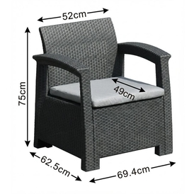 Kėdės matmenys: 69 x 65 x 75 cm.