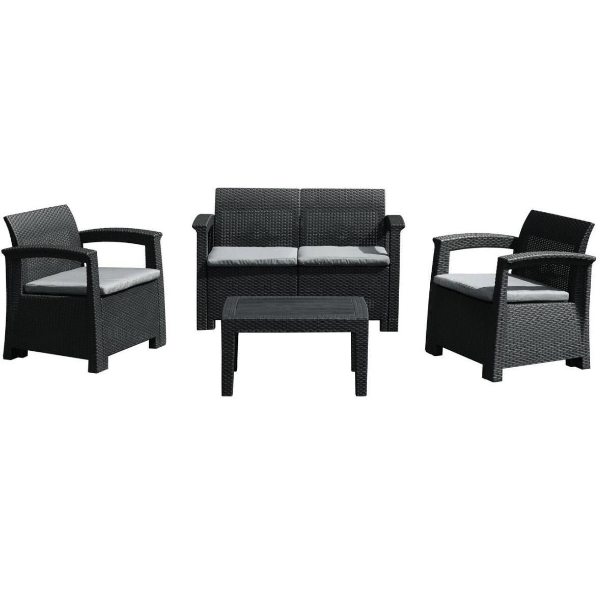 Rotango baldų komplektas: sofa, 2 foteliai, stalas