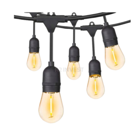 Ši girlianda puikiai atrodo tiek moderniuose, minimalistiniuose išdėstymuose, tiek klasikinėse, kaimiškose ar bohemiškose erdvėse. Dėl ilgo laido ir estetiškai patrauklių lempučių galite lengvai sukurti atmosferinį apšvietimą, kuris pakeis jūsų terasos, balkono, pergolės, pavėsinės ar restorano kiemelio išvaizdą. Tai ne tik praktiškas šviesos šaltinis, bet ir dekoratyvinis elementas, sukuriantis atpalaiduojančią atmosferą ir padarantis aplinką elegantiškesnę ir svetingesnę.