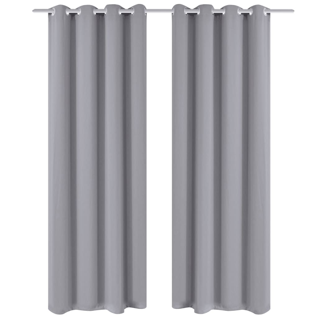 2 pilkos, tamsinančios užuolaidos su metaliniais žiedais, 135 x 245 cm
