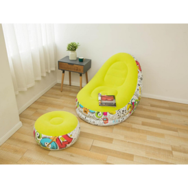 Pakeiskite savo kambarį ir suteikite jam jaukumo bei žaismingumo su šiuo pripučiamu foteliu su pakoja. Šis unikalus komforto ir modernaus dizaino derinys puikiai tinka tiek namams, tiek lauke ar net atostogoms.